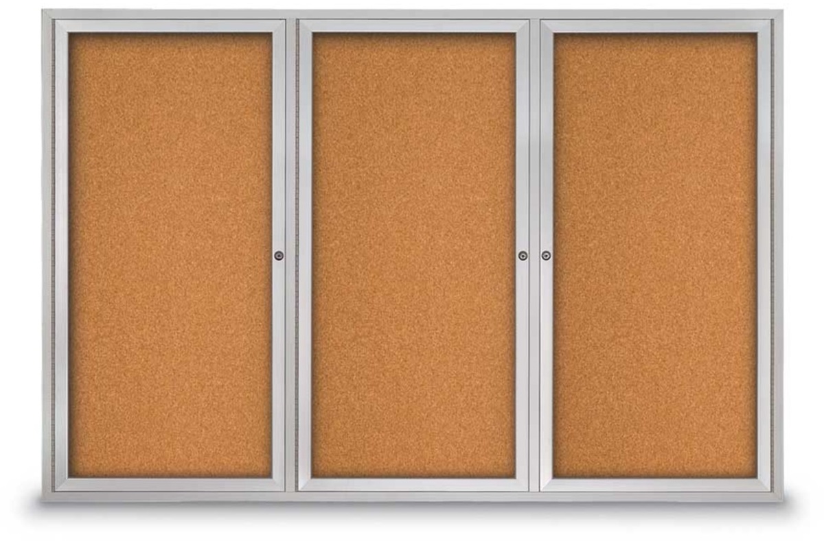 - AccuformNMC™ DTE237 48" X 72" X 2" 3-Door Style Enclosed Cork Board displays important messages and notices.