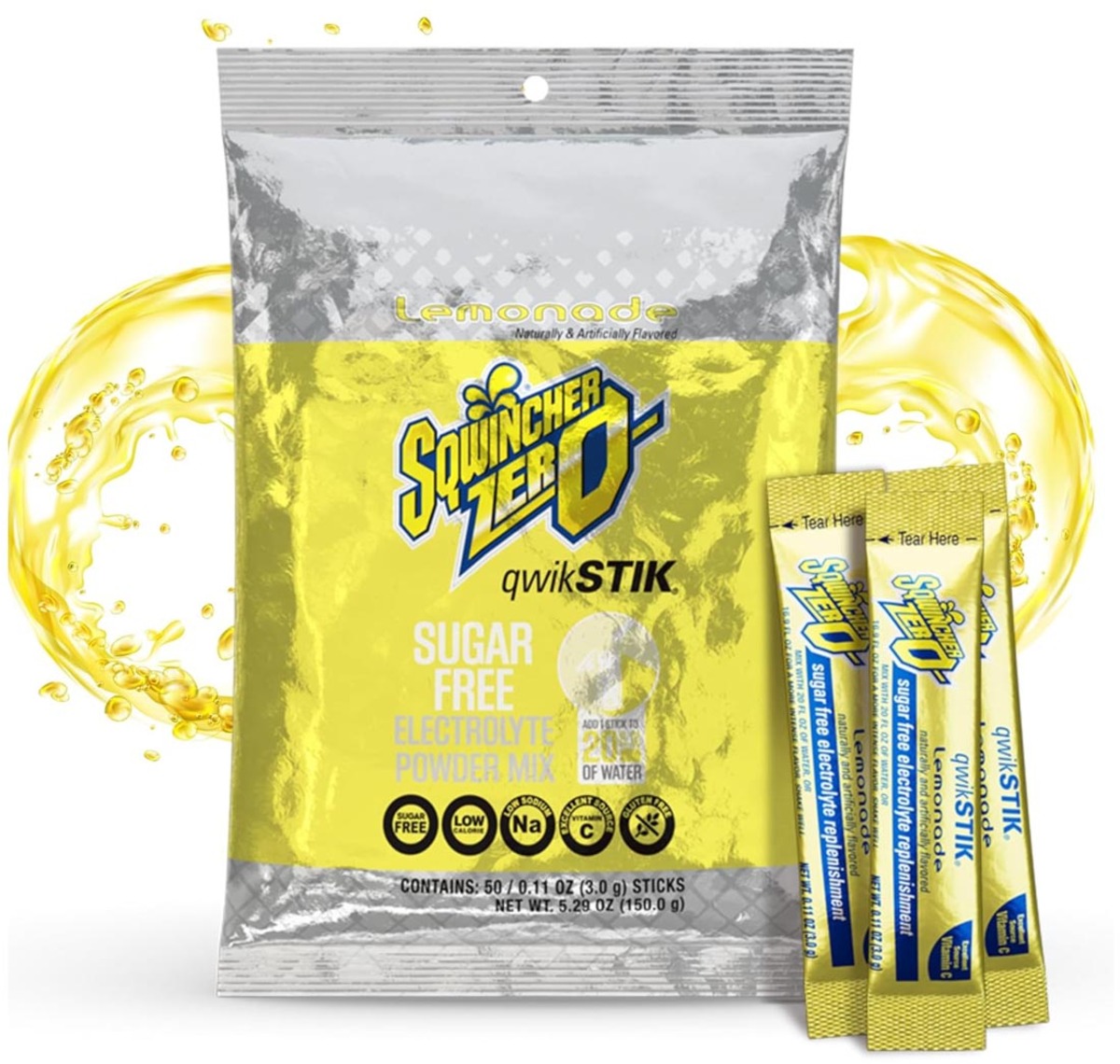 - Sqwincher® Qwik Stik 20 oz. ZERO Sugar, Low Calorie Lemonade Flavored Powder Electrolyte Hydration Drink Mix. Mix with 20 ounces of water.