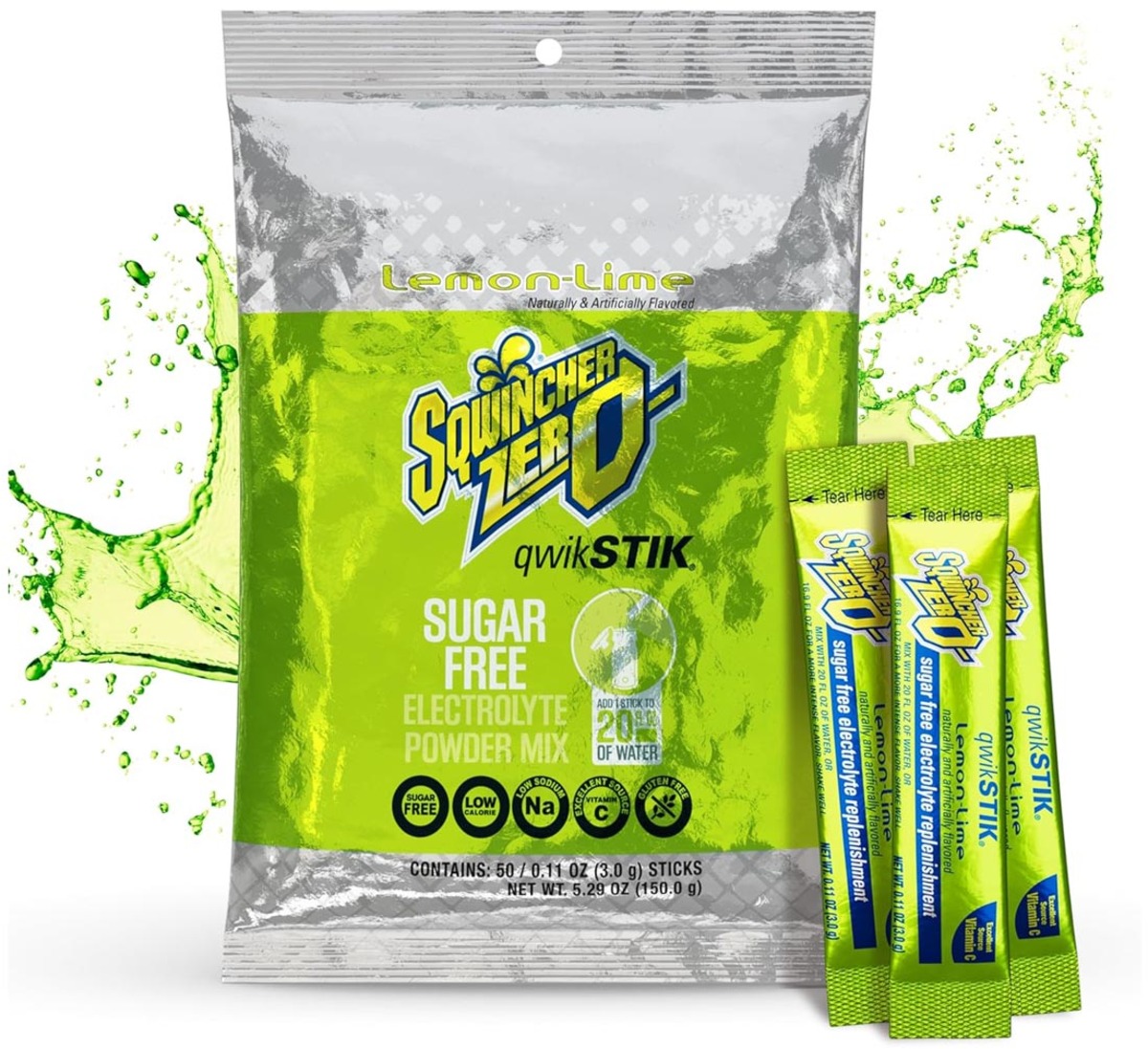 - Sqwincher® Qwik Stik 20 oz. ZERO Sugar, Low Calorie Lemon-Lime Flavored Powder Electrolyte Hydration Drink Mix. Mix with 20 ounces of water.