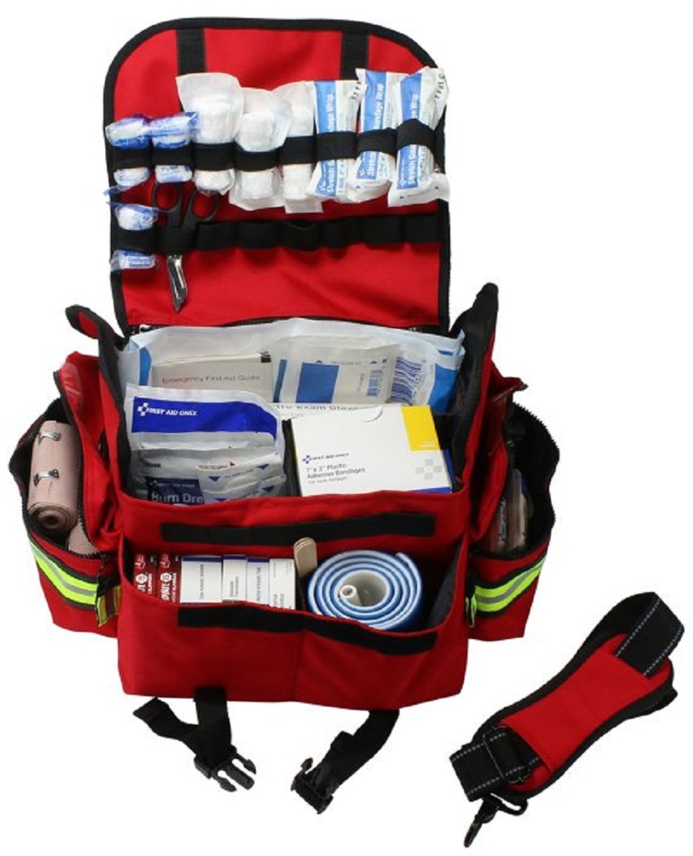 - This advanced first responder bag contains a comprehensive assortment of the essential first aid supplies you need in a medical emergency.