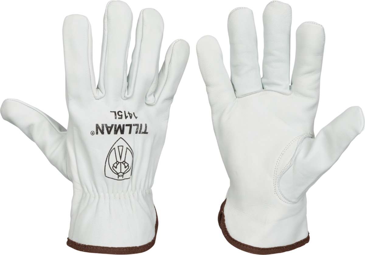 - The Tillman® 1415 series drivers gloves are constructed of premium top grain pearl goatskin, with excellent abrasion resistance and tensile strength. Unlined for improved dexterity. A keystone thumb provides maximum flexibility, and the forefinger is seamed for strength. The gloves have a shirred elastic wrist for a secure fit, and to keep debris out. It has a cotton tape cuff for easy on/off. Size is large.