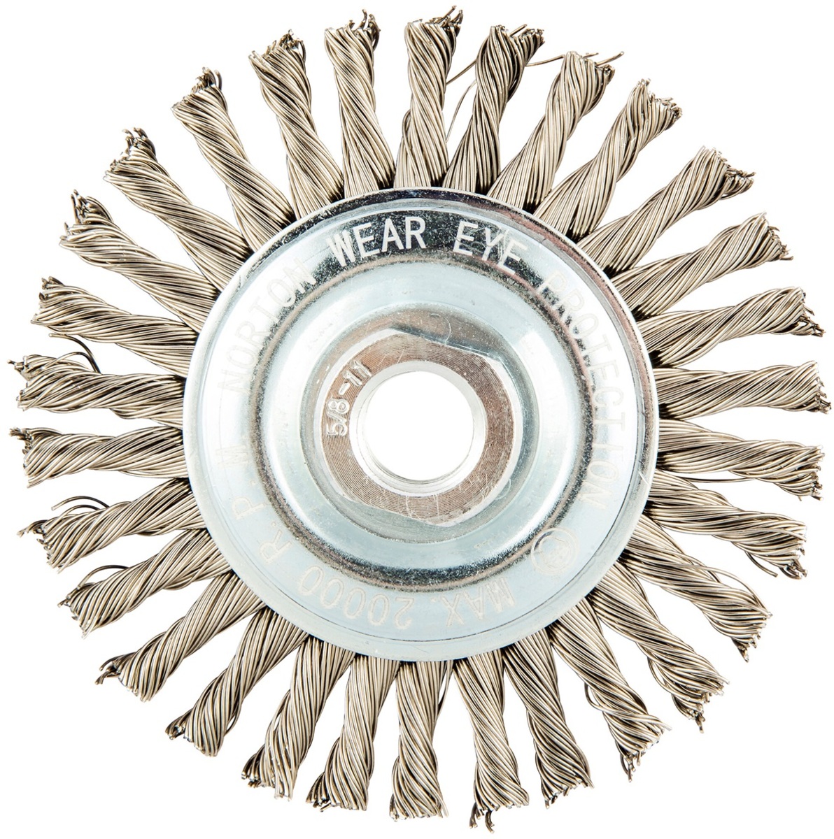 Norton® 4" X 5/8" - 11" Gemini Stainless Steel Stringer Bead Twist Wheel Brush