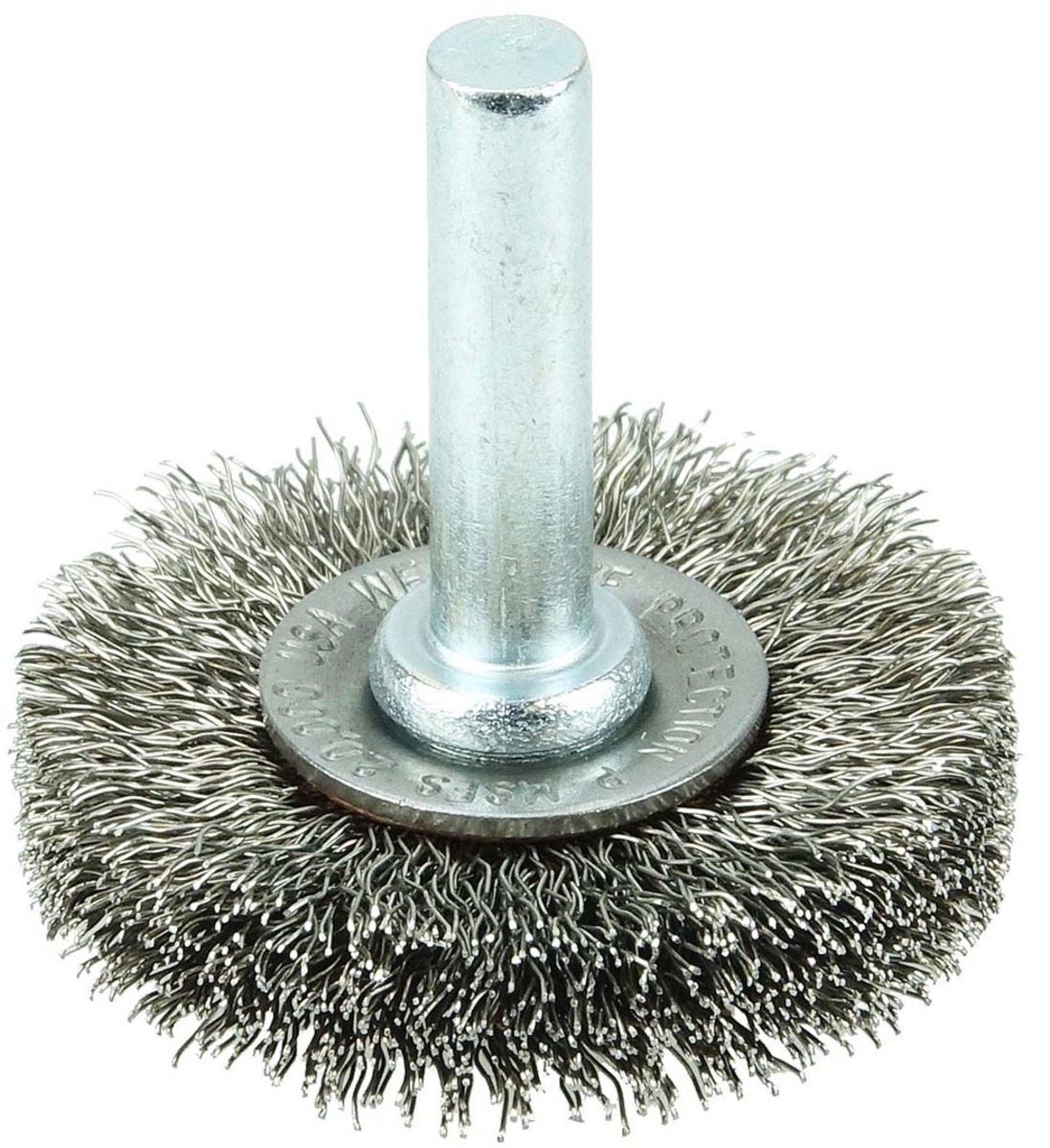 - Weiler® Stem Mounted Crimped Wire Radial Wheels feature side plates for a shorter trim length and more controlled brushing action in a stem-mounted crimped wire wheel.