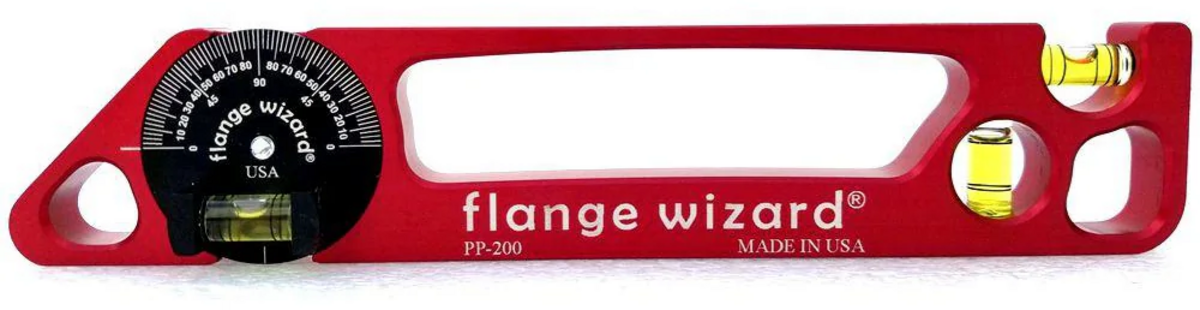 - Flange Wizard® 9" X 1 1/2" Pocket Pro Level is machined from aluminum and anodized for a protective finish and has strong magnet that holds firmly on any steel surface. Dial is in 2 1/2 deg increments with spring tension for easy operation. Two stationary vials are placed at 90 deg angles of each other and can be read from any surface of the level.