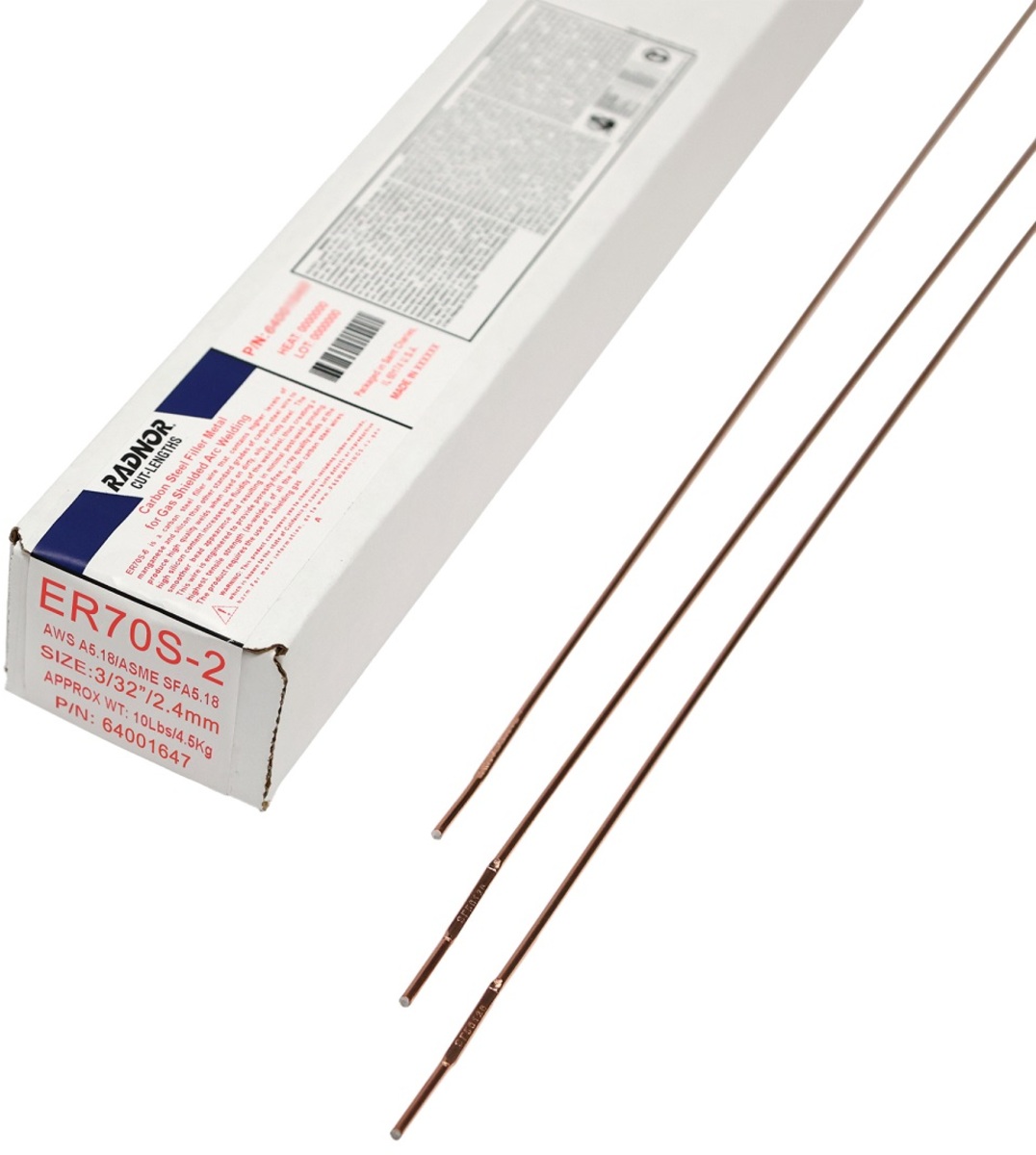 - ER70S2 is a premium TIG wire for welding on all grades of mild and carbon steels, producing quality welds with minimal porosity. It is a triple deoxidized wire (Zirconium, Titanium, and Aluminum) making it an excellent choice for welding over rust and mill scale. This wire is available in 36 inch lengths and embossed on both ends for easy identification.