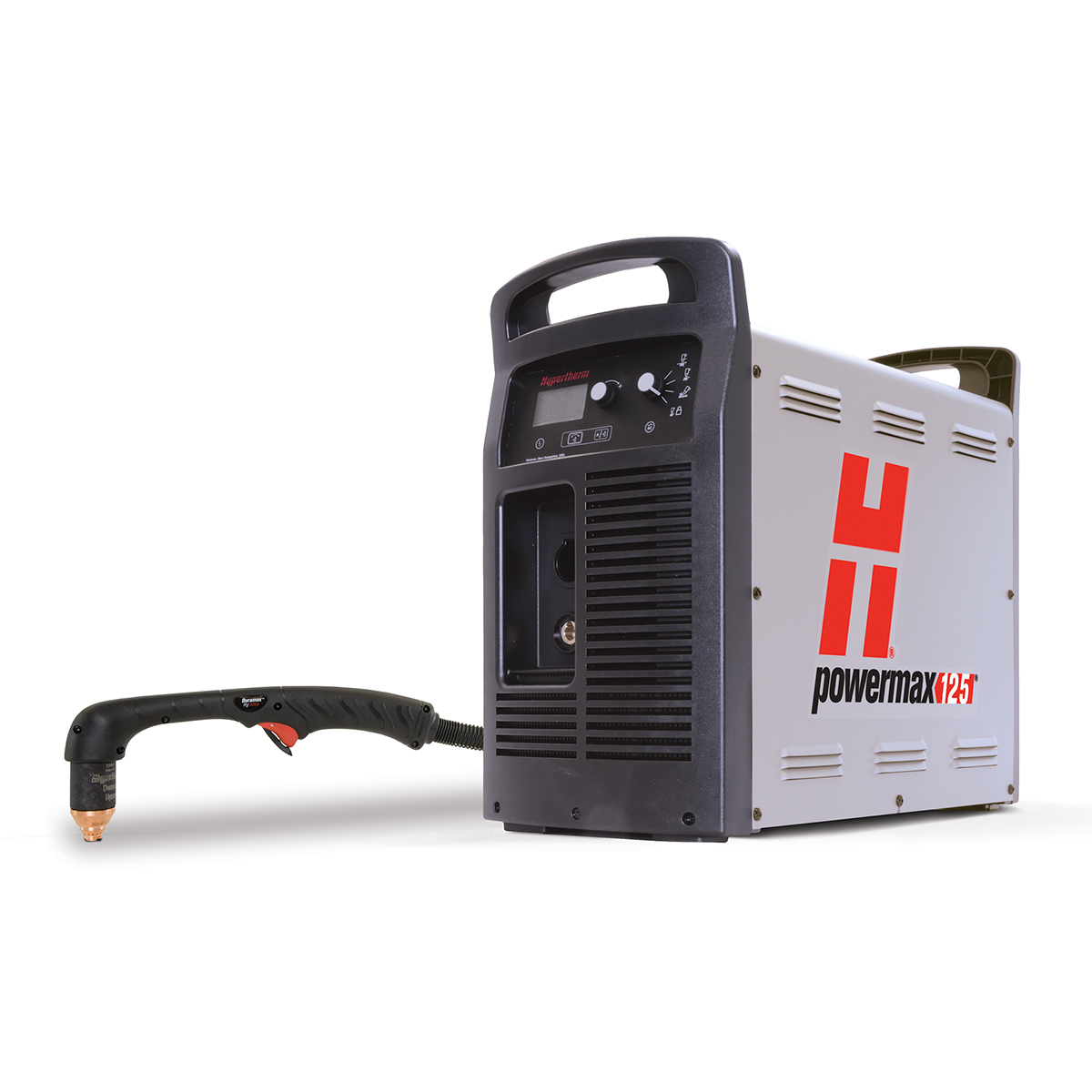 - Hypertherm® Powermax125® CSA Plasma Cutter with CPC port and voltage divider delivers 480 V for cutting applications. System features a 85 deg hand torch that measures 25'.