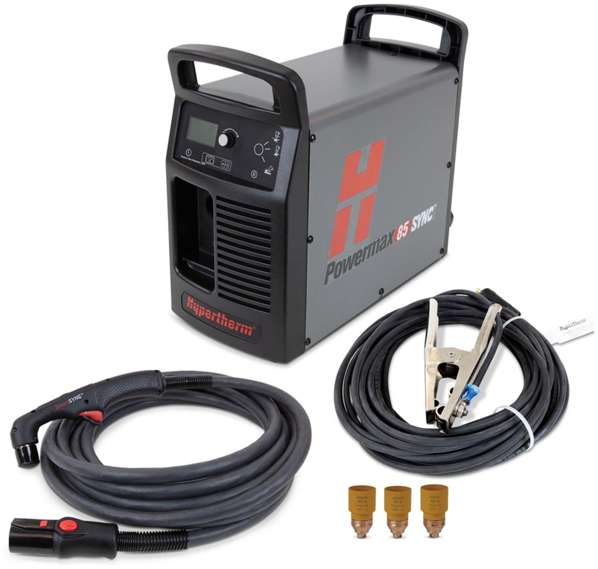 - The Powermax85 SYNC® is a next-generation professional-grade air plasma cutter that dramatically simplifies system operation for cutting and gouging up to 25 mm (1"). Features automated system process set-up via advanced RFID-enabled SmartSYNC® torches and a revolutionary single-piece cartridge consumable that provides trackable utilization data. The Powermax85 SYNC® maximizes productivity through reductions in downtime, optimized cut quality performance, and streamlined consumable inventory management.