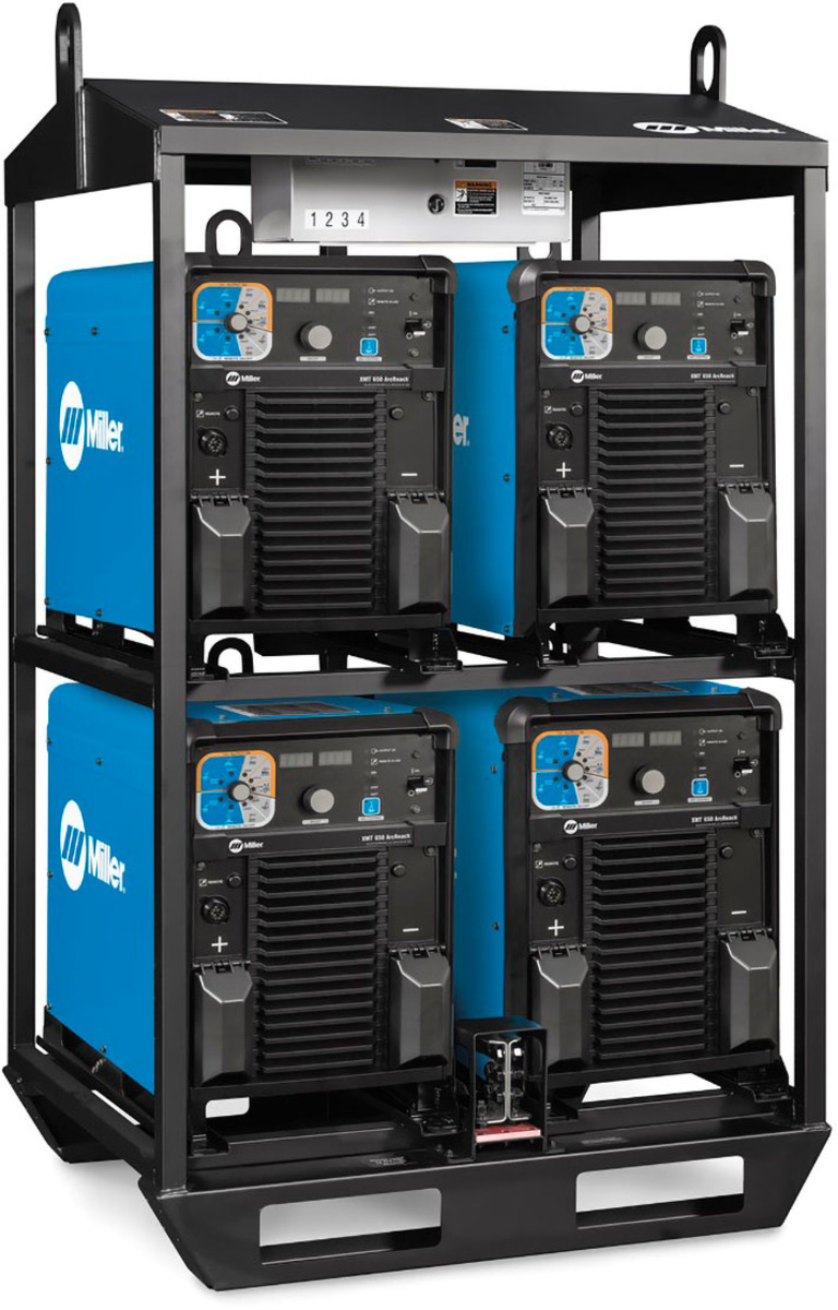 - Comes assembled with four XMT® 650 ArcReach® power sources fused for 460 volts. Features include: provision to parallel power sources on common work connections with two lifting eyes for transportation and rugged skids for dragging or pushing.