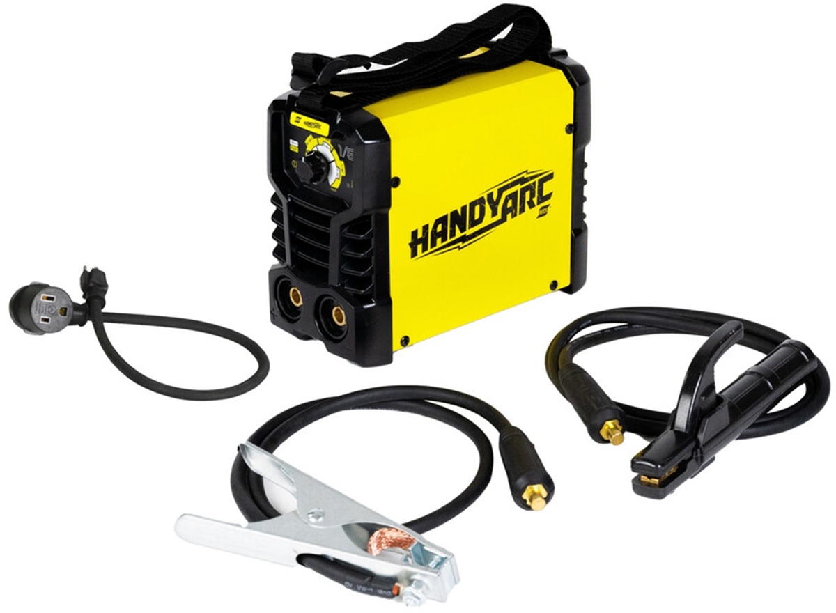 - The new HandyArc 1/8 Stick (SMAW) welder introduces a new concept of portable machines with advanced ESAB inverter technology, ideal for users who work on basic projects or need to perform small repairs. A simple, yet intuitive front panel with graphics scaled for input voltage and electrode diameter makes HandyArc 1/8 easy to learn and use for beginners. Durable housing design ensures robustness, and the compact dimensions combined with low weight and included shoulder strap provides superior portability in workshop.