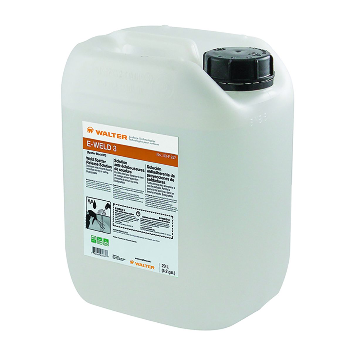 - E-WELD 3™ is a high performance anti-spatter solution that both cleans and degreases the workpiece as well as protects it from high velocity spatter, even in high heat applications. This helps eliminate an extra step in the welding process and helps to avoid costly rework.