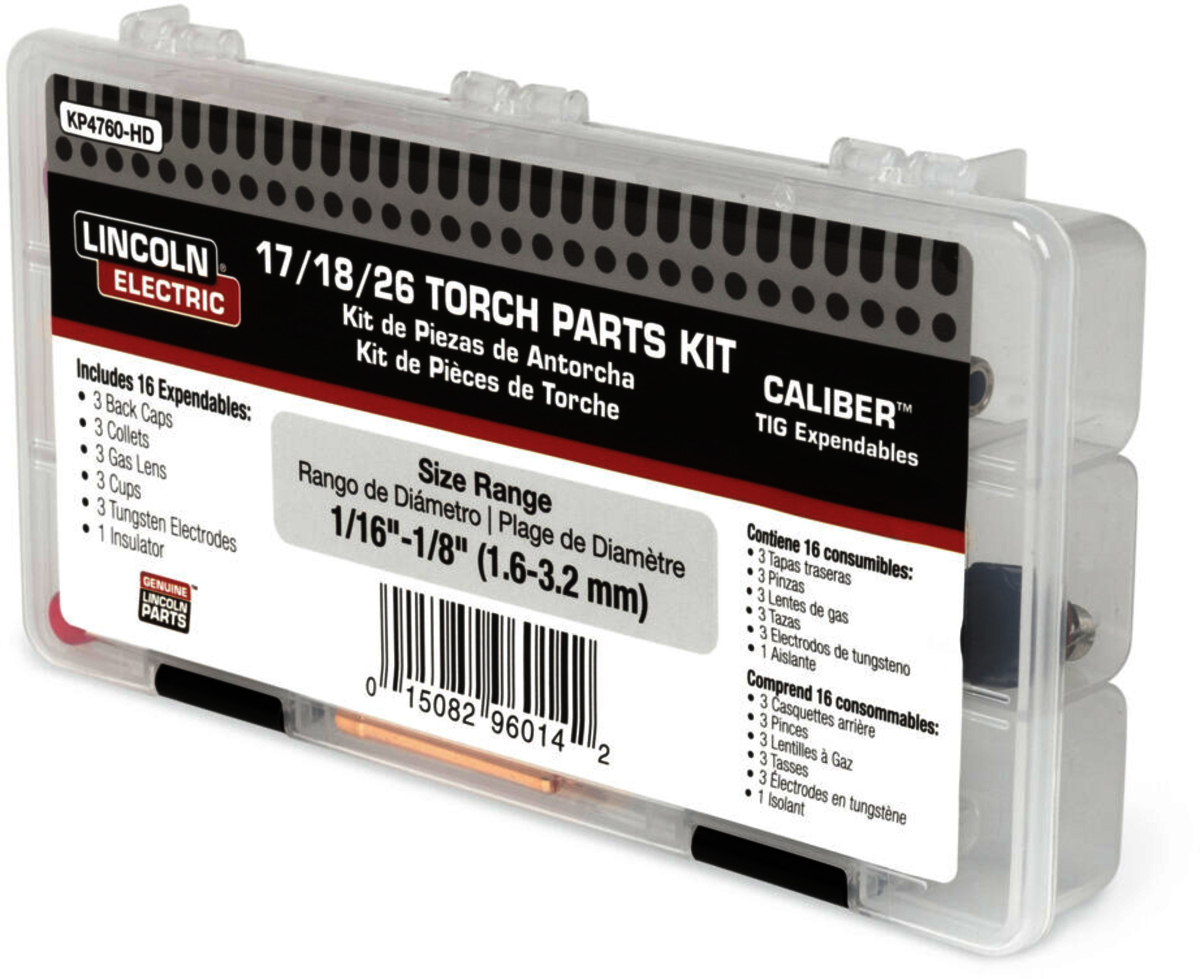 - Caliber TIG Expendables Kits include all of the front end parts needed to run a Gas Lens set up on 17/18/26 Series TIG Torches. Caliber TIG Expendables are compatible with both Lincoln Electric and competitive TIG Torches.